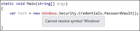 var vault = new Windows.Security.Credentials.PasswordVault();