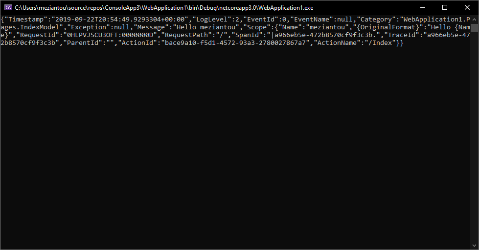 ASP.NET Core supports a logging API that works with a variety of built-in and third-party logging providers. The built-in providers allow logging to the console, the debug output, or as ETW messages. In my case, I needed to output the messages and their associated data to the console as JSON. This means I had to create a custom logger and integrate it into the ASP.NET Core application.