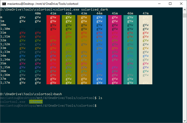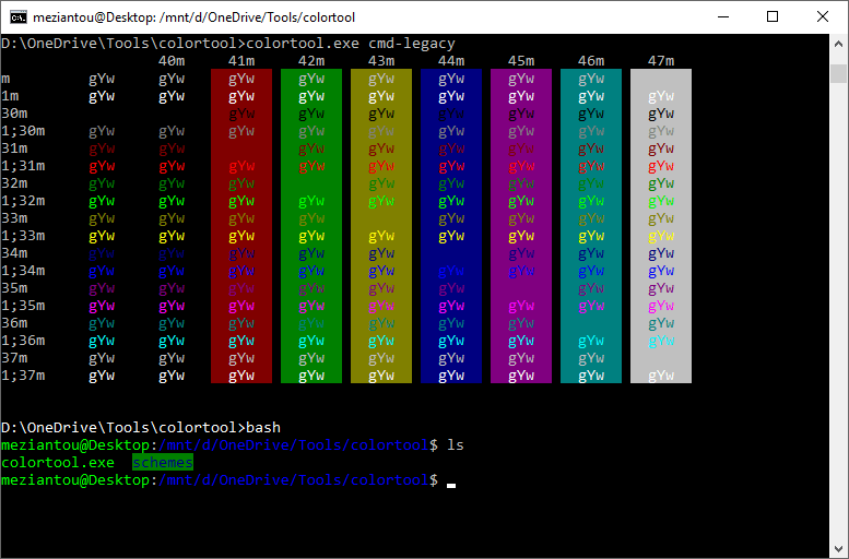At the same time, Microsoft has released a new tool to apply a custom color scheme. You can download the zip file on GitHub: https://github.com/Microsoft/console/releases. Then, extract the archive and open a command prompt in this folder. You can now quickly change the color scheme using this command line: