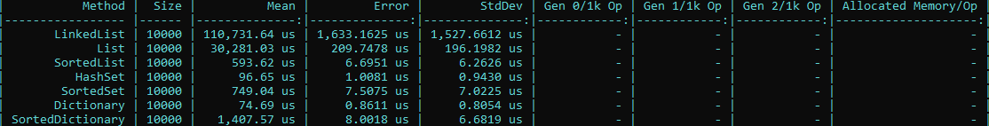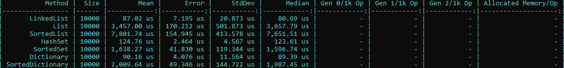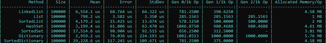 | SortedDictionary | O(log(n)) | N/A | N/A |