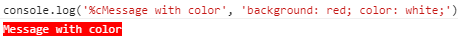 console.log('%c Message with color', 'background: red; color: white;');