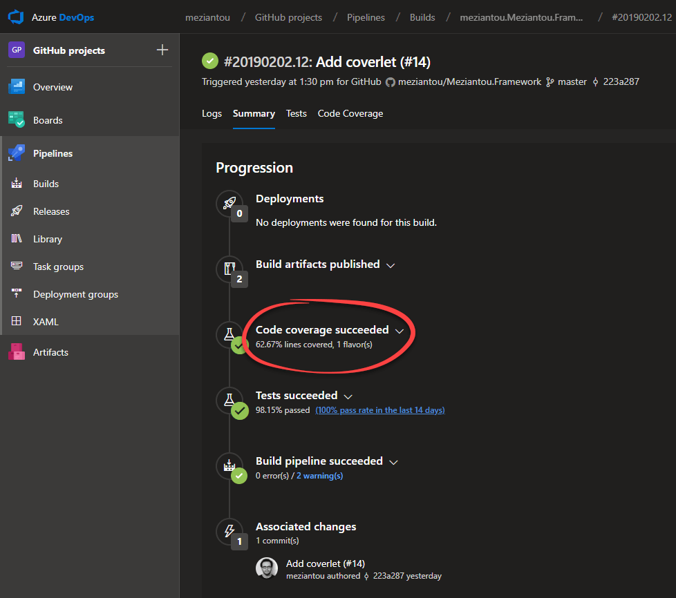 Creating automated tests is important to be sure your application behaves as it should. The more tests you write, the more use cases are covered. Sometimes it can be hard to know which parts of the application are well-tested, and which ones are not. That's why code coverage is interesting. It can be a useful measure to detect potential risk areas in the application (i.e. the most complex methods with the least coverage). Let's see how you can do that easily with .NET Core and Azure DevOps.