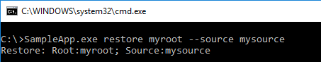 command.HelpOption("-?|-h|--help"); // AppSample.exe restore --help