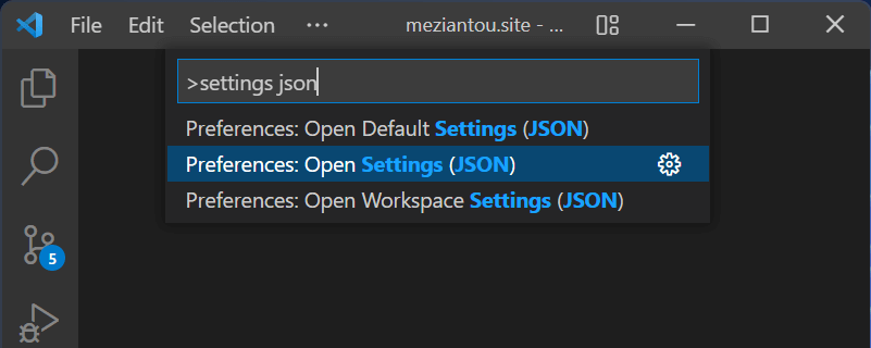 Or you can change the VS Configuration to assign the schema to the GitHub Actions files. Open user or workspaces settings (Ctrl+Shift+P) and select the "Settings (Json)" entry