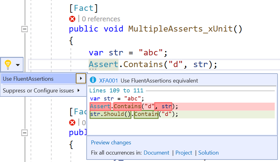 <PackageReference Include="FluentAssertions.Analyzers" Version="0.11.4" />