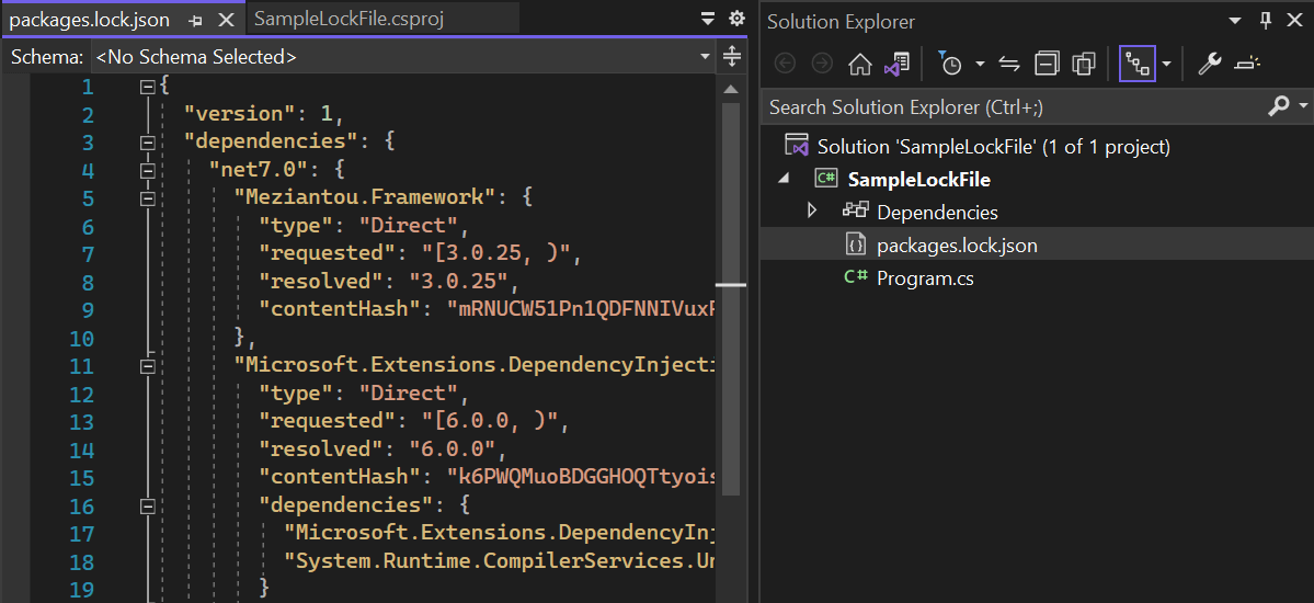 - Security: The lock file contains the package hash. If you download a corrupted or malicious package, NuGet can detect it and fail.
