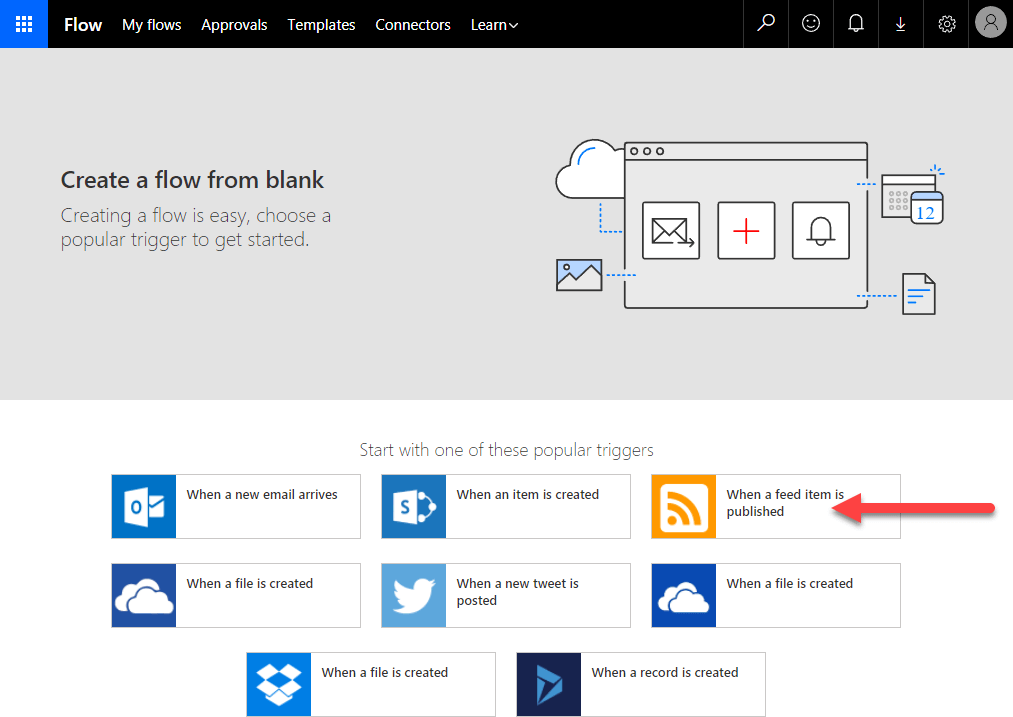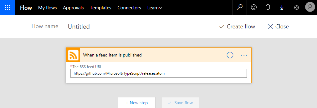 The idea is to use Microsoft Flow to send you an email, or a push notification, or a JIRA task, or a Trello card, or whatever you prefer 😃 Microsoft Flow allows us to automatically do some actions when something happens. In our case, we'll send an email when a new item is published in an RSS feed. The free version of Microsoft Flow includes 750 runs per month, unlimited flow creation, and 15-minute checks. This is enough for our needs.