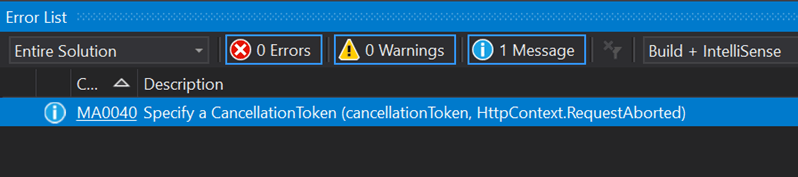 #Detecting missing CancellationToken using Meziantou.Analyzer