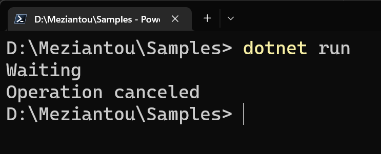 You sometimes need to detect when a console application is closing to perform some cleanup. Console.CancelKeyPress allows registering a callback when a user press Ctrl+C or Ctrl+Break. This event can prevent the application from closing, so you can take a few seconds to perform the cleanup before actually terminating the application. The idea of this post is to use Console.CancelKeyPress to create a CancellationToken that can be used to cancel current asynchronous operations.