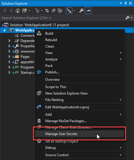 For more details, you can read the documentation: Safe storage of app secrets in development in ASP.NET Core. If you are using Visual Studio, you can also read this blog post: Managing Secrets in .NET CORE 2.0 Apps.