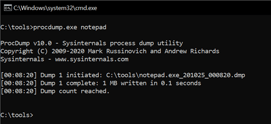 ProcDump is a command-line utility that allows generating a dump file when the application freezes or when it uses too much CPU.