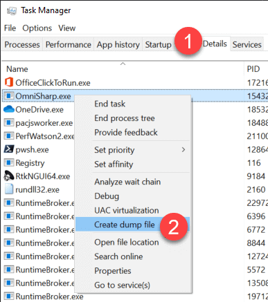ProcDump is a command-line utility that allows generating a dump file when the application freezes or when the process uses too much CPU.