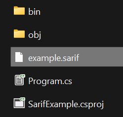 A SARIF file is easy to output from a .NET project. You can use the ErrorLog property in the project file to specify the name of the SARIF file. First, create a new console project: