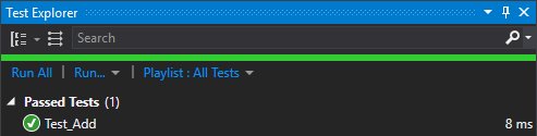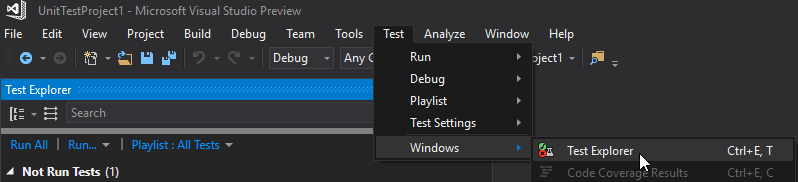 Now, you can run the test directly in Visual Studio. Open the Test Explorer window (Ctrl+E, T)