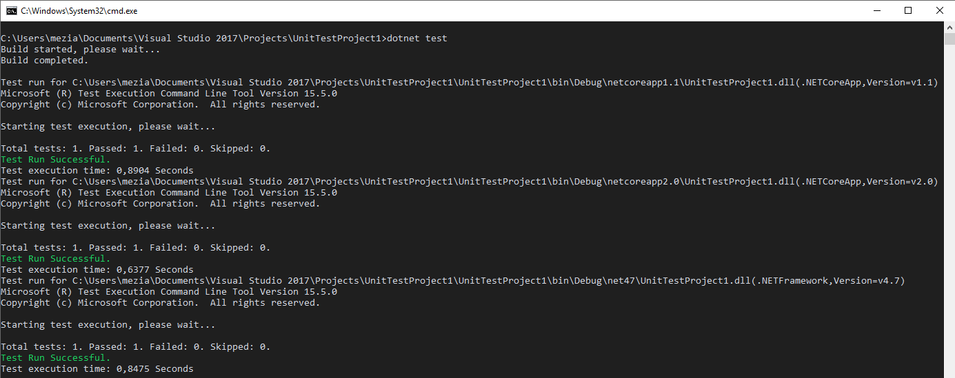 Note: The test explorer of Visual Studio doesn't support multiple frameworks. It will only display and execute the test of one platform.