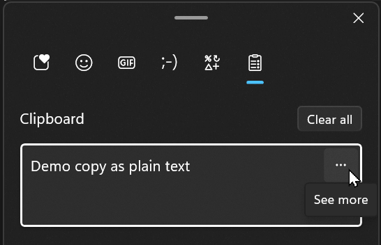 Windows: Win + V, Then click "…" (see more), Then "Paste as text". To use the keyboard, you can press Tab Enter to select the option: