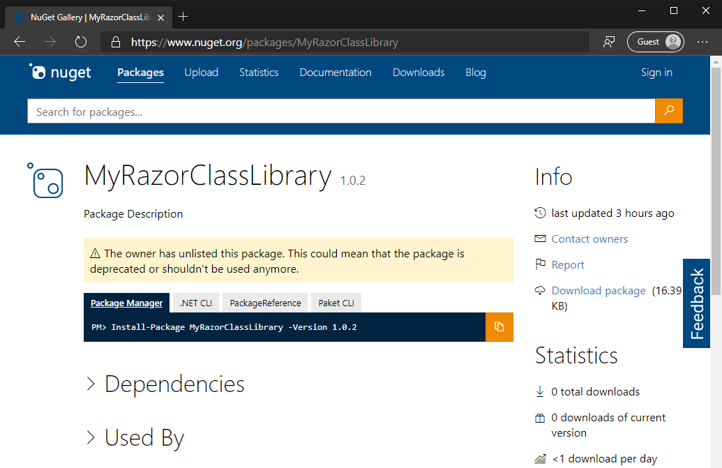 You can now consume your library into a Blazor application. First, add a reference to the NuGet package: