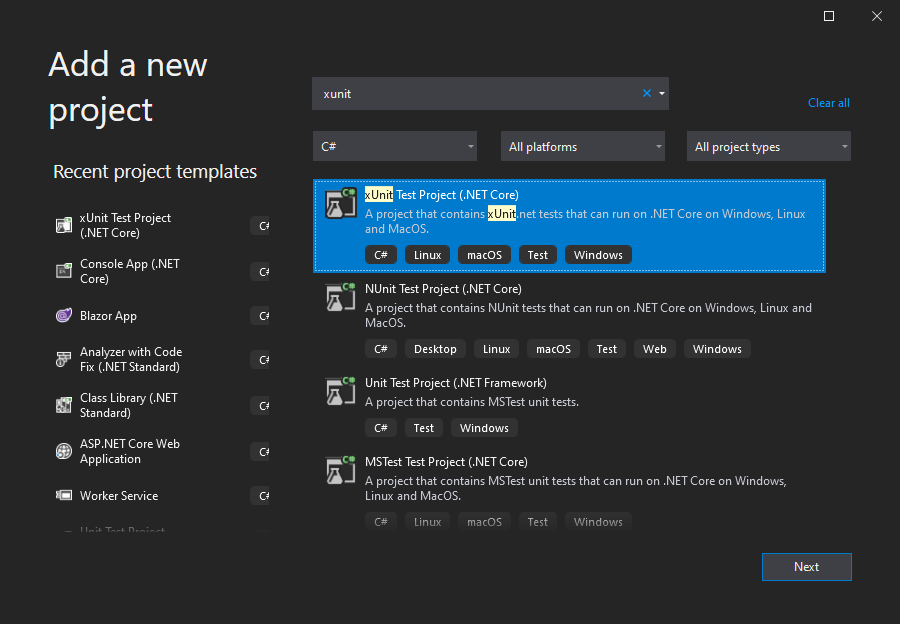 xUnit.net is a free, open-source, community-focused unit testing tool for the .NET Framework. Written by the original inventor of NUnit v2, xUnit.net is the latest technology for unit testing C#, F#, VB.NET and other .NET languages. xUnit.net gains lots of popularity when Microsoft starts using it for CoreFX and ASP.NET Core. This is also the test framework I use on most of my projects. So, this post is an overview of the possibilities of this framework.