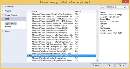 Windows Image Acquisition (WIA) was introduced with Windows 2000. This platform is intended to allow access to scanner and webcam devices without having to worry about the details of interfacing with them. In addition WIA included GUIs to help us use these devices from our code (script, COM, .NET via COM). Here is a diagram showing the architecture of WIA: