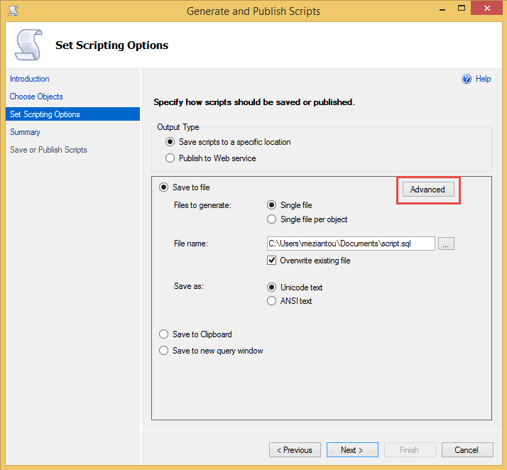 In the rest of the article we will see multiple ways to export and import data: either by generating an SQL script or by using the BCP utility.
