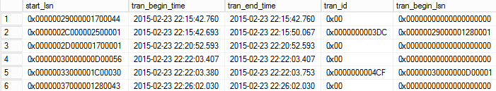These operations do not use the date format but LSNs. To obtain these we can use the following functions: