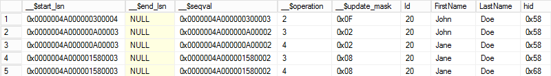 SELECT * FROM [Sample].[cdc].[dbo_Employee_CT]