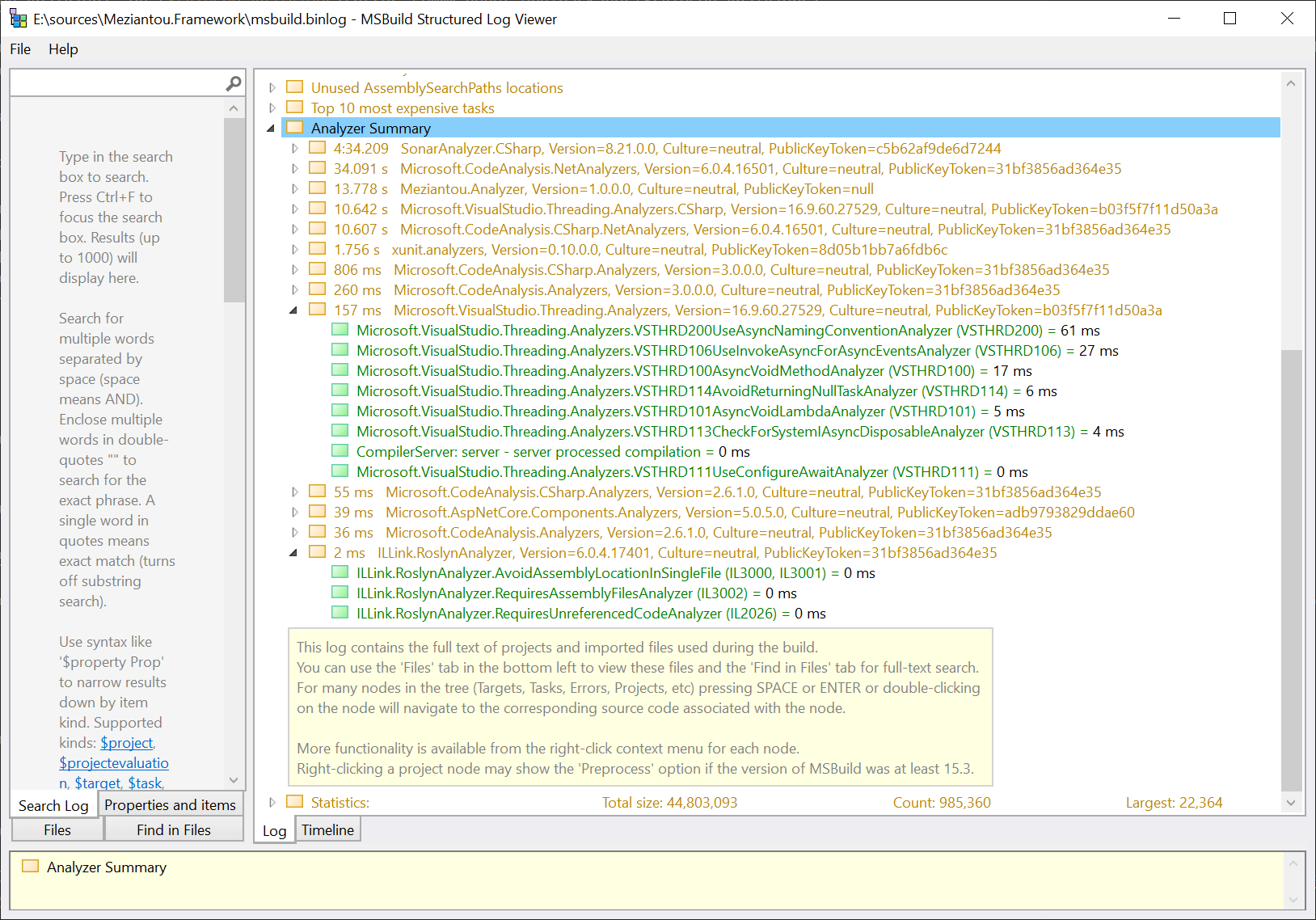 You can open this file using the Binary Log Viewer. If you scroll down, you'll find the "Analyzer Summary" section. This section shows the execution for each rule: