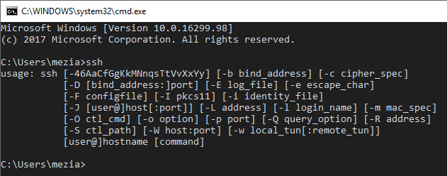 The Windows Subsystem for Linux allows running Linux applications directly on Windows, unmodified, and without the overhead of a virtual machine. This means you can run the SSH client on Windows.