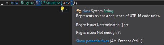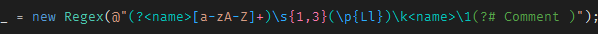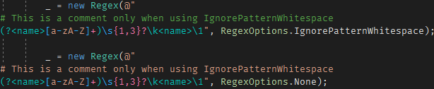 In C#, a regex is just a string. When the pattern is not simple, it can be hard to understand it. Visual Studio 2019 comes with some improvements to help you working with regexes.