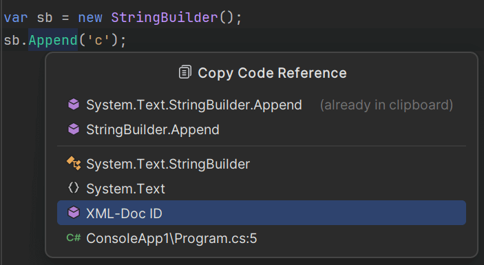 If you don't know how to construct the XML Comment ID, you can use JetBrains Rider: